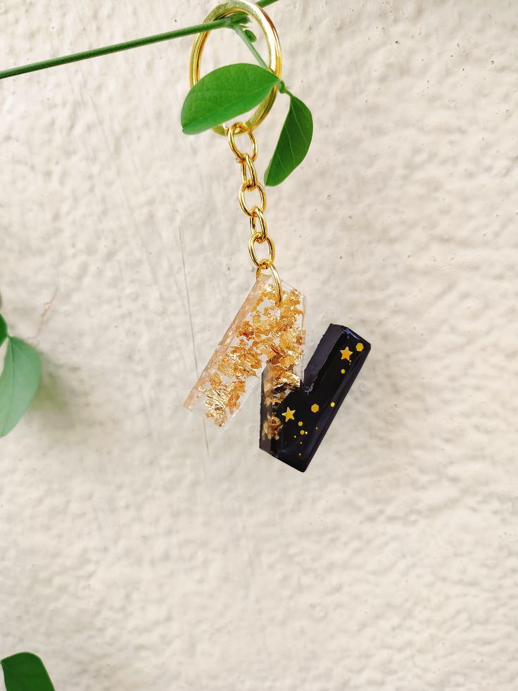 Show off your style with this resin alphabet keychain – Letter "N". Expertly handcrafted, this piece combines shimmering golden flakes with a deep black resin finish decorated with glowing star accents. The glossy surface enhances both beauty and durability, while the golden keyring adds a premium touch. Perfect as a personalized gift or a chic everyday accessory.