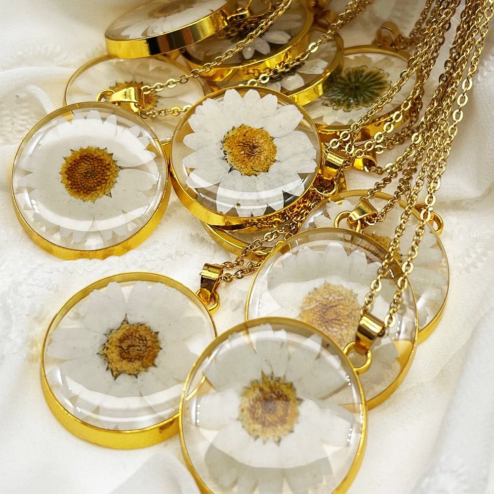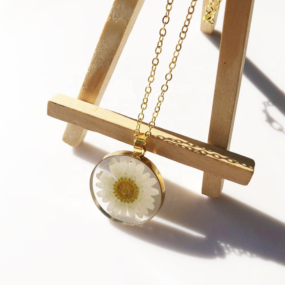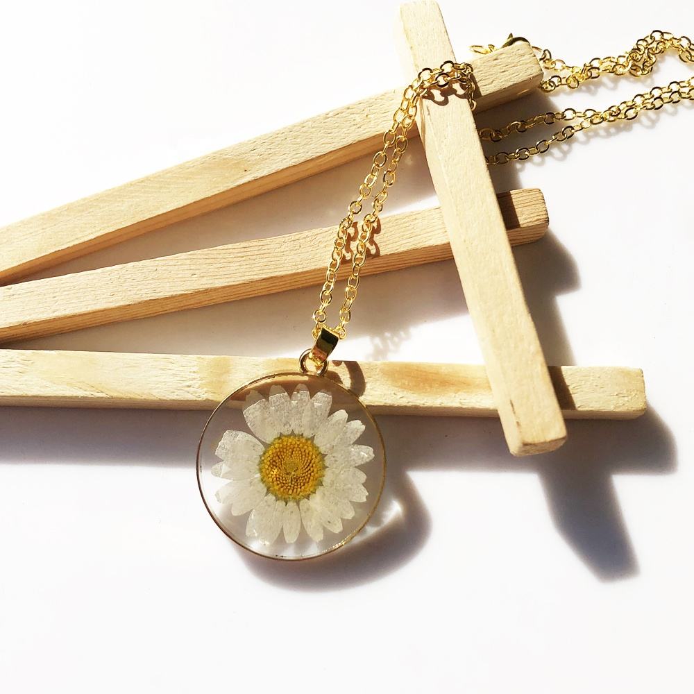 Eternal Daisy Resin Pendant Necklace – Real Flower Jewelry